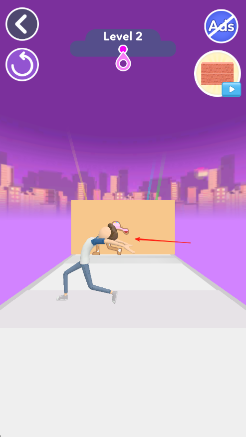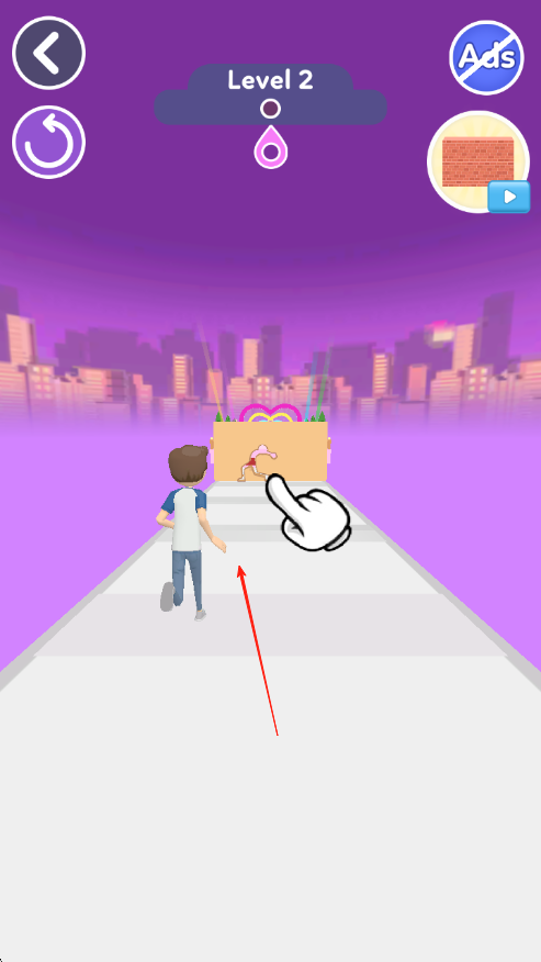 1、在【Level2】关卡,操控人物向前奔跑,看到红箭头指向的箱子上图案,按提示滑动屏幕摆出对应姿势,穿过箱子。