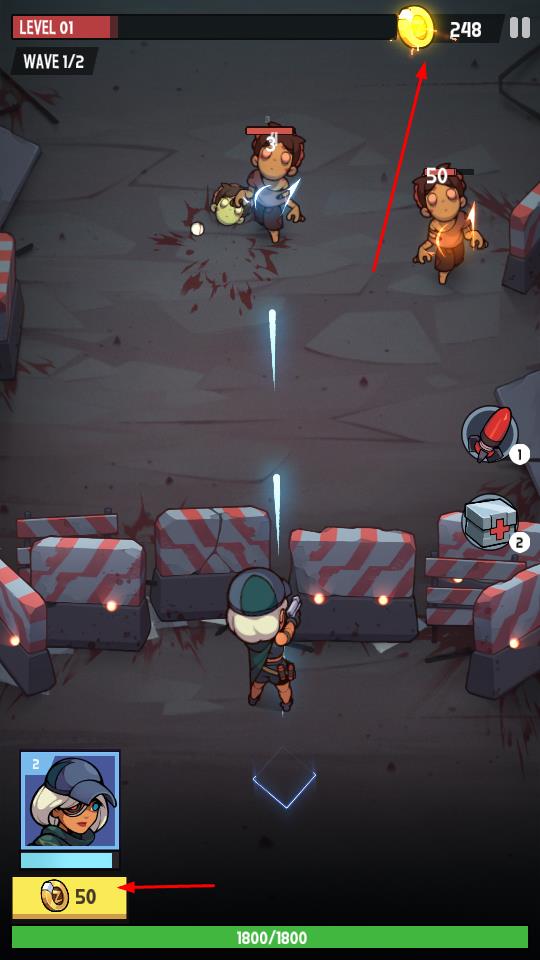 1、武器道具强化战力:闯关过程中需不断解锁更多新武器以提升基础射击能力,面对防御或数量占优的强大僵尸时,合理使用道具能有效突破困境。