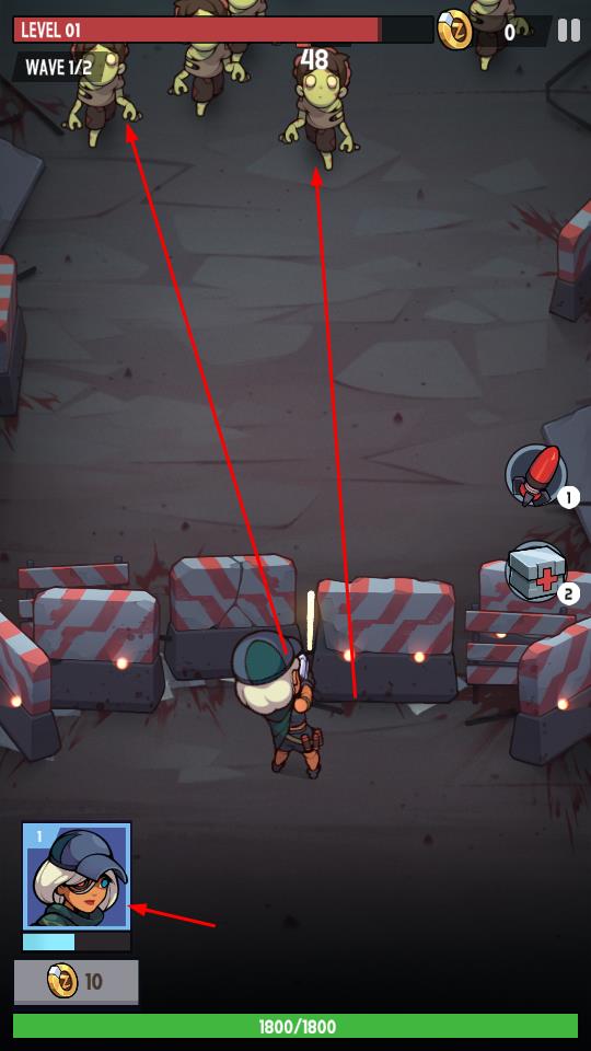 1、操控人物精准射击:玩家需灵活操控人物移动调整位置,同时瞄准出现在视野中的僵尸进行精准射击,确保快速消灭眼前敌人,还要注意躲避僵尸的反扑攻击。
