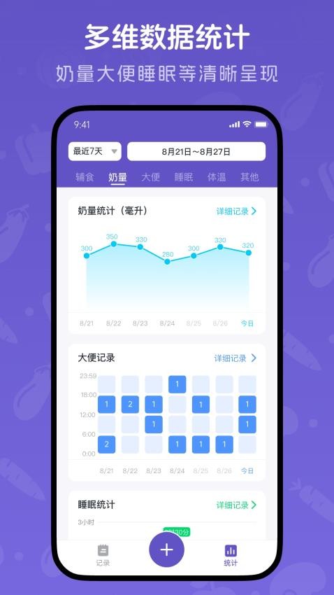 2、数据化分析助力科学喂养:自动统计喂养数据并生成趋势图表,直观展示宝宝饮食规律、营养摄入变化,及时发现喂养问题,帮助科学调整方案。