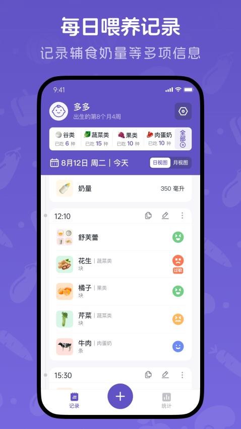 2、个性化适配不同成长阶段:根据宝宝月龄自动调整记录模板与营养建议,例如1岁后增加食物多样化搭配指导,满足不同阶段的喂养需求。