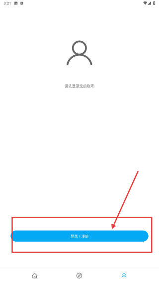 3、切换到个人页,点击登录/注册按钮,完成账号登录,解锁更多个性化功能与内容权限。