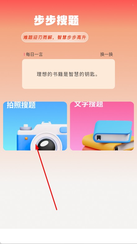 1、打开步步知新,进入步步搜题页,选拍照搜题。