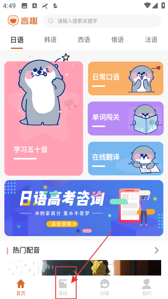 1、选择课程学习:打开软件后,从日语、韩语等多门小语种中选择想学习的科目,进入相应课程进行在线听课,利用发音模拟、书写练习等功能辅助学习,解决学习遇到的问题。