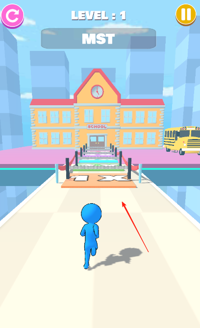 3、持续跑酷,按红箭头方向冲向学校建筑,避开沿途危险,顺利抵达终点,完成当前关卡挑战。