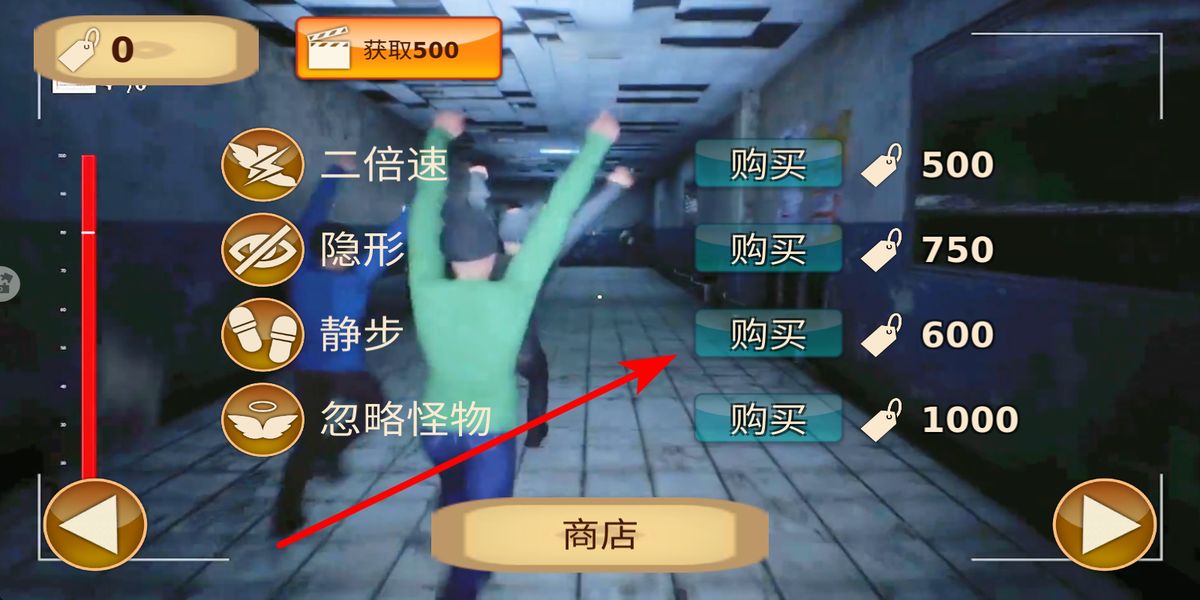 2、商店系统里,可用标签买二倍速、隐形、静步、忽略怪物道具,二倍速加快行动,静步降低移动声响,忽略怪物无视敌人干扰,按需购买提升逃生几率。