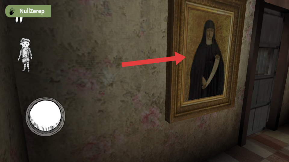 2、游戏中沿走廊移动,遇到神秘画像邪恶修女保持警惕,发现暗门标识时,点击打开互动,留意相关动静。
