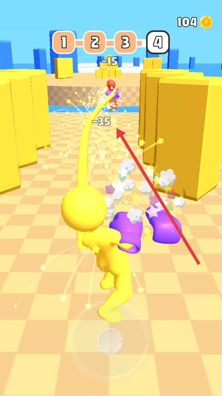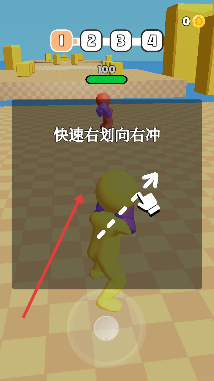 2、战斗中,依据敌人位置调整移动,通过划屏冲刺拉近身位,用拳套持续输出伤害,突破4阶段关卡。