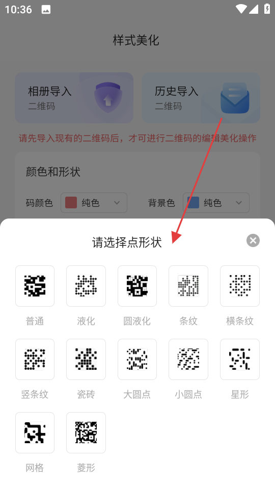 1、进入样式美化,选点形状,在弹窗中选择普通,液化等点形状样式。
