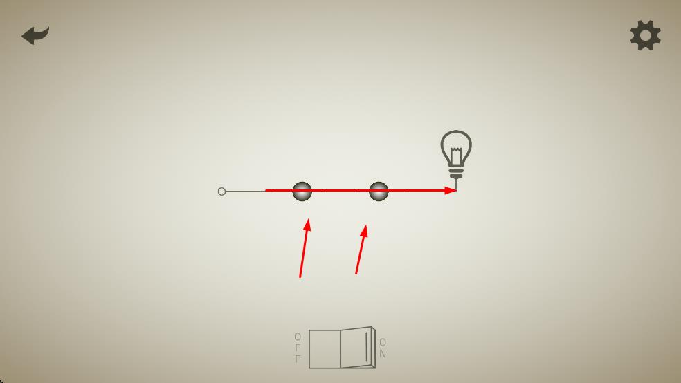2、拖动导电球连线路,通电源与灯泡使其亮,完成关卡。