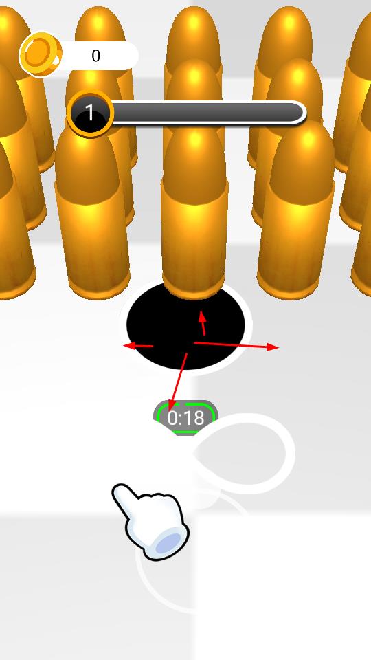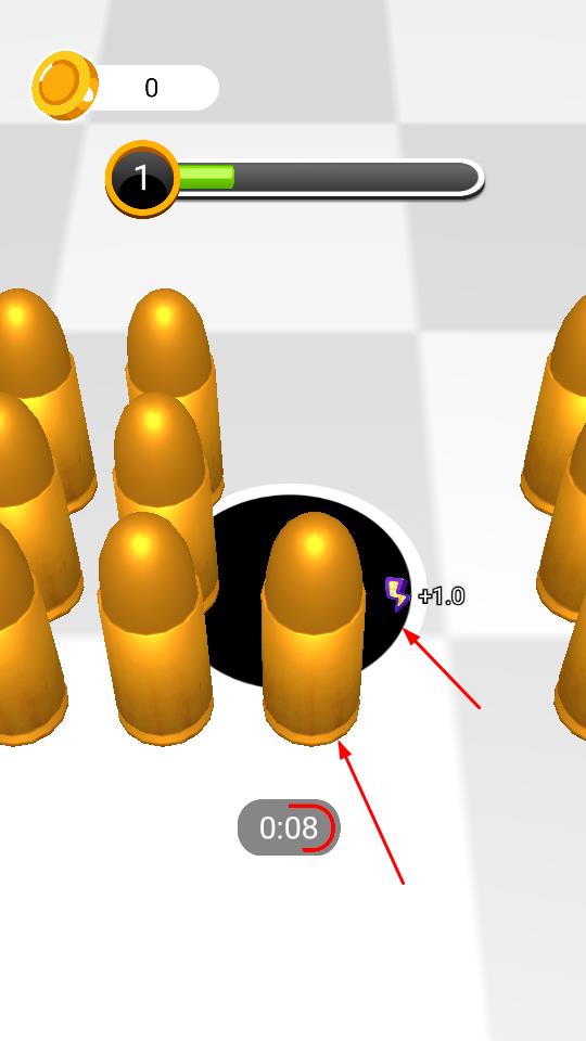 1、启动限时黑洞,吸附周围金子弹,积累进度升级,开启闯关。