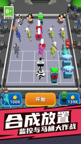 2、创意角色设定:以马桶人、监控人为核心角色,打破传统游戏角色的常规形象,造型充满脑洞与创意,每个角色都有专属外观与特性,如监控人擅长侦查。