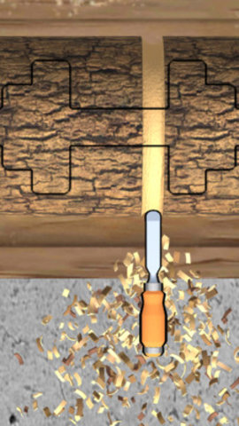 1、进入关卡后,点击下方工具栏,挑选与木料轮廓适配凿子工具,沿着表面的黑色的轮廓线移动。
