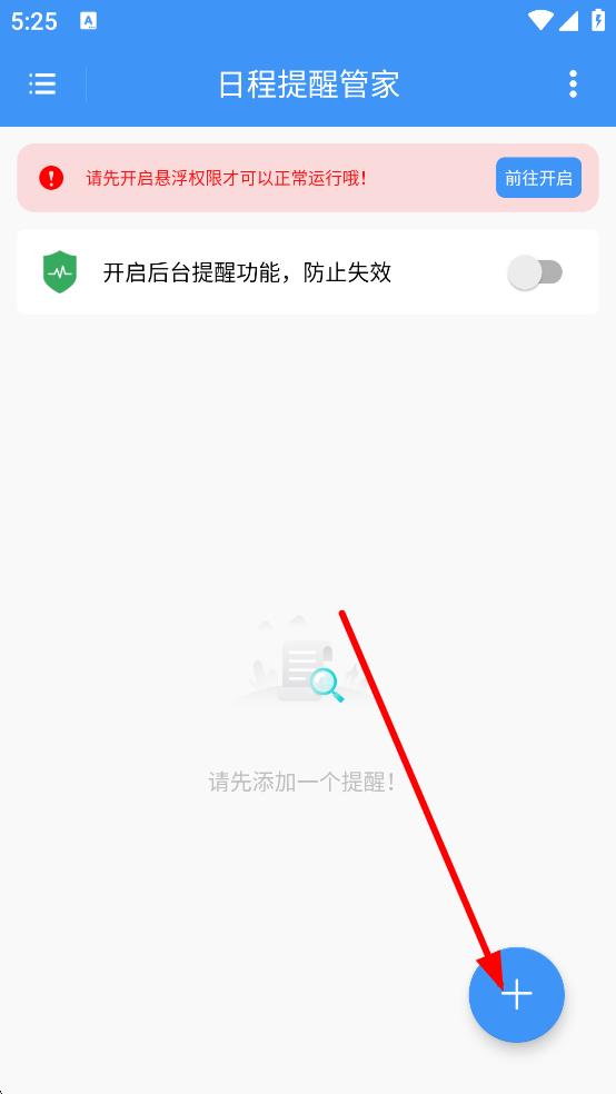 1、在日程提醒管家的页面,点击右下角蓝色+按钮,可添加提醒。