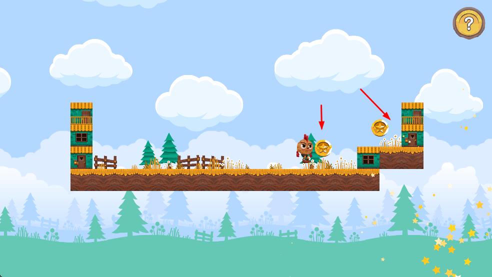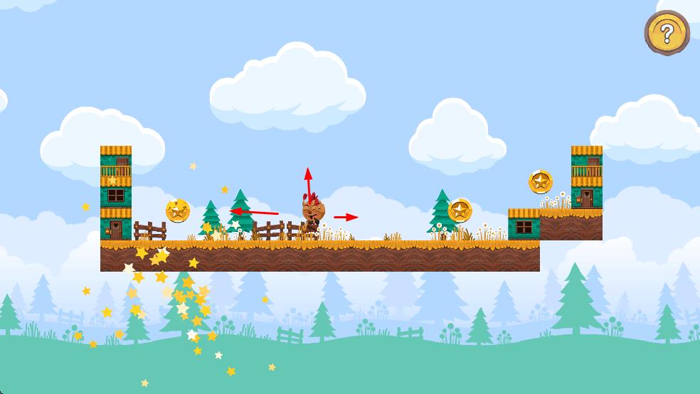 1、操控角色在田园场景移动,通过左右移动、跳跃跨越障碍,沿途收集金币,推进闯关进程。