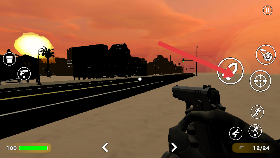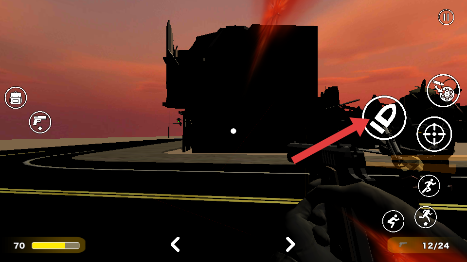 2、当靠近地面上的武器时,可自动完成拾取操作,点击武器切换按钮,就能更换枪械,例如机枪手枪则更适合灵活处理敌人。