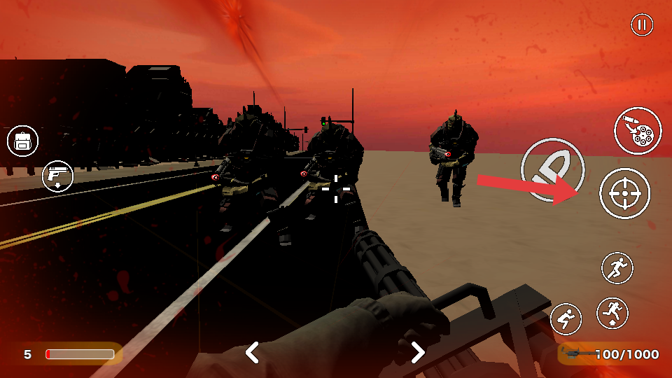 1、进入游戏后利用右侧的射击按钮向敌人发起攻击,借助左侧的摇杆或是虚拟按键操控角色移动,巧妙运用场景里的掩体。