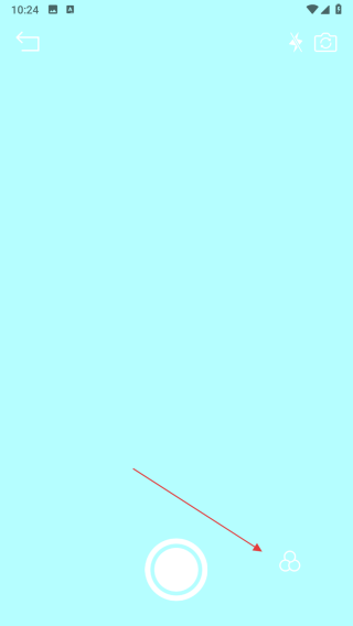 2、在拍摄界面中,点击红箭头指向的类似三个叠加圆形的图标,打开滤镜选择菜单。