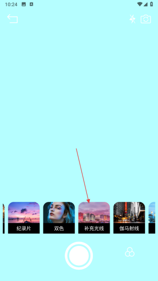 3、打开菜单后,滑动查看滤镜选项,按红箭头指示点击想要的滤镜,即可开启滤镜模式。