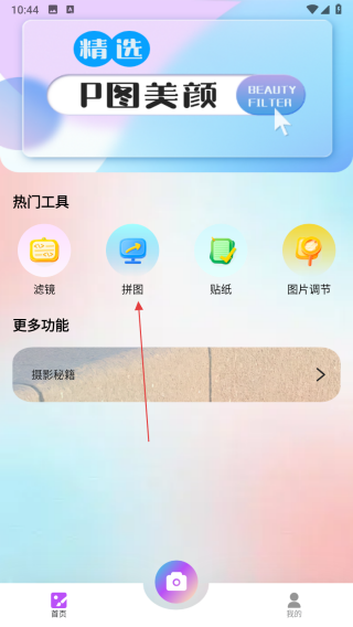 1、打开九狐相机APP,在首页点击拼图图标进入图片选择界面。