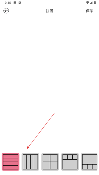 3、进入拼图界面,按红箭头指示选择喜欢的拼图模板样式,调整图片位置和顺序,完成后点击保存即可。