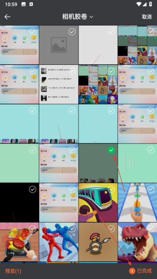 2、在图片选择界面勾选需要调节亮度的图片,然后点击右下角已完成按钮。