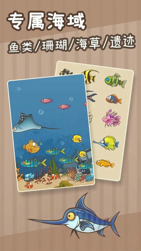 2、海洋馆搭建饲养玩法:用经营所得资源解锁海洋馆区域,购买水族箱与各类海洋生物,调整水族箱布局保证生物生存环境定期照料提升活跃度。