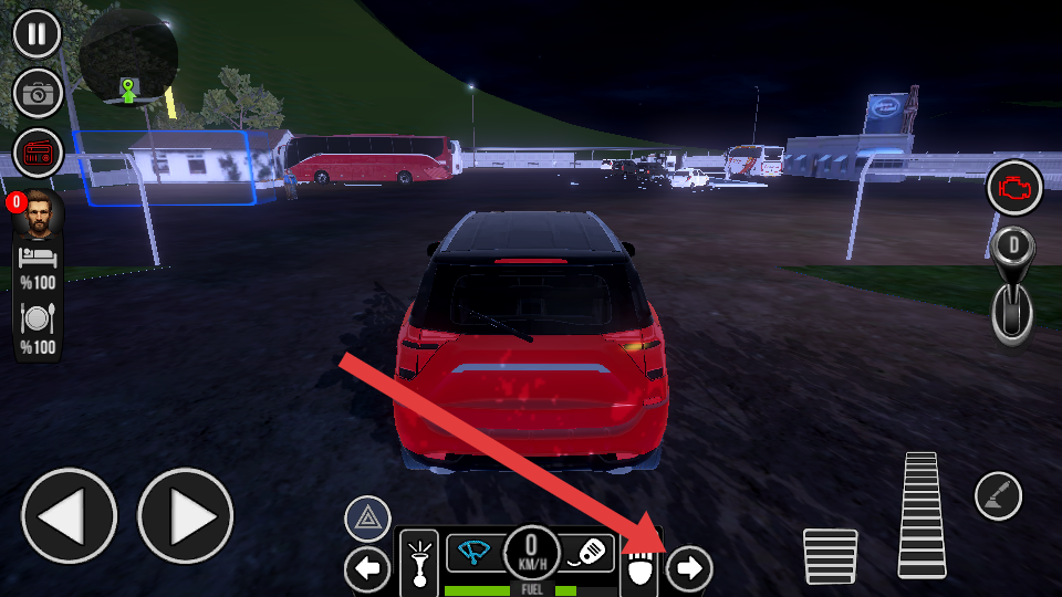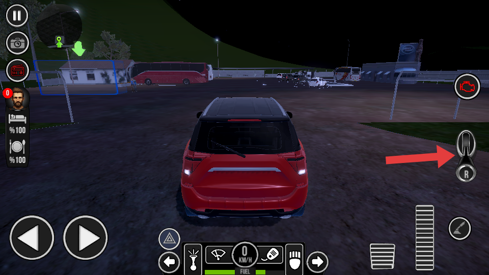 1、利用左右箭头控制车辆移动,借助换挡杆切换挡位例如 R 挡倒车来调整车位,驾驶的车辆前往。