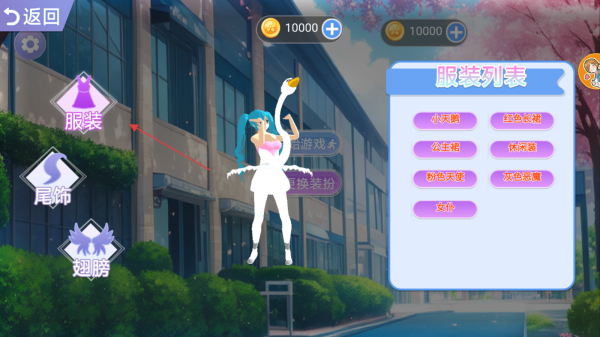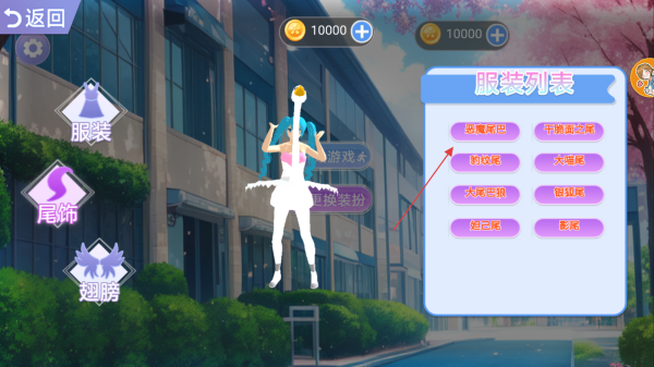 2、进入装扮界面后,点击左侧的服装选项,右侧会显示服装列表。