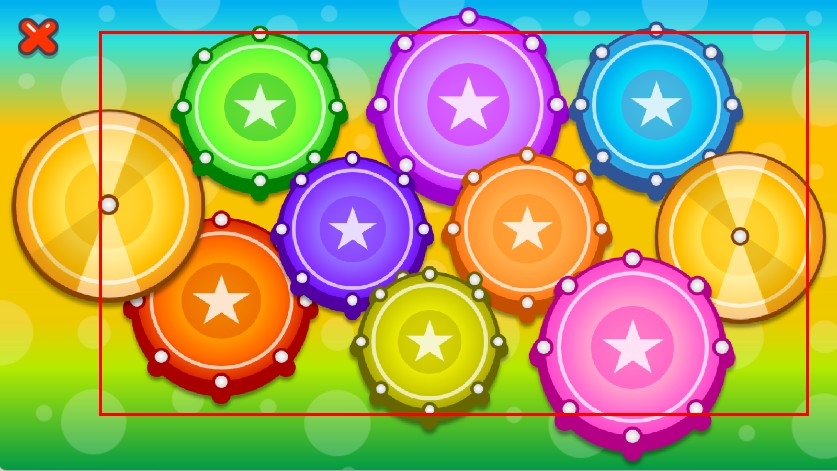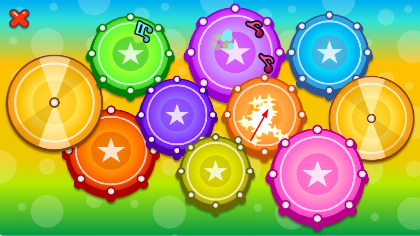 2、进入后,可看到多个带有白色星星标识的彩色鼓面区域。