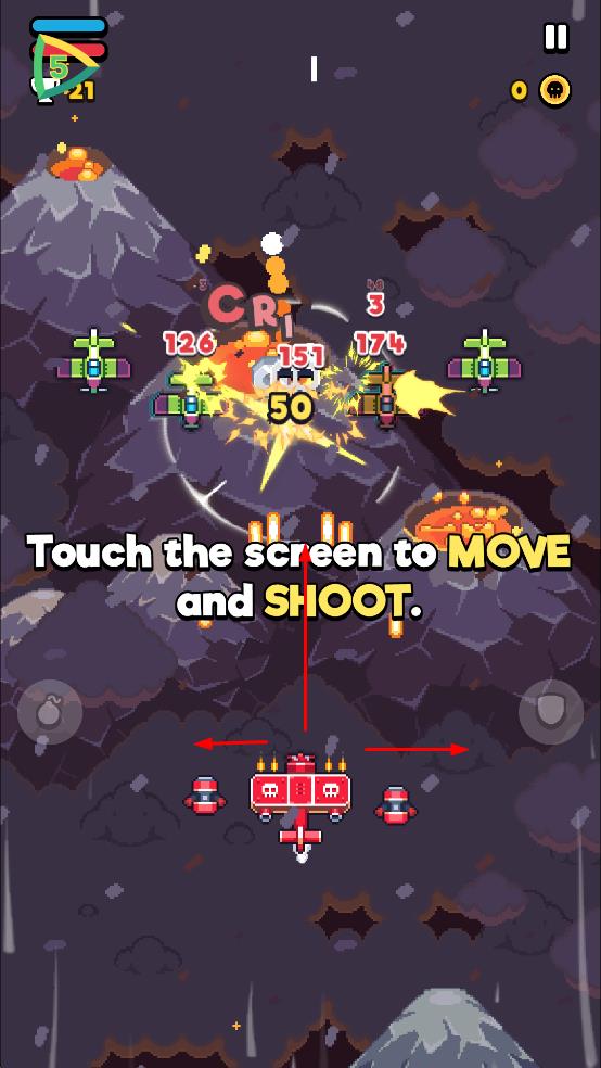 1、像素风格空战氛围:以经典像素画风还原热血空战场景,战机的灵动穿梭、敌机的爆炸特效、弹幕的密集交织均呈现出细腻流畅的视觉效果,搭配激昂的背景音效。