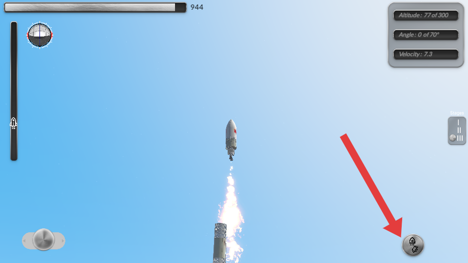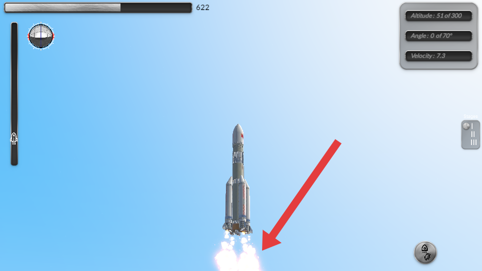 3、高度达到300、角度达到70°且速度稳定,顶部进度条走完,模拟发射任务成功,还原航天发射参数机制。