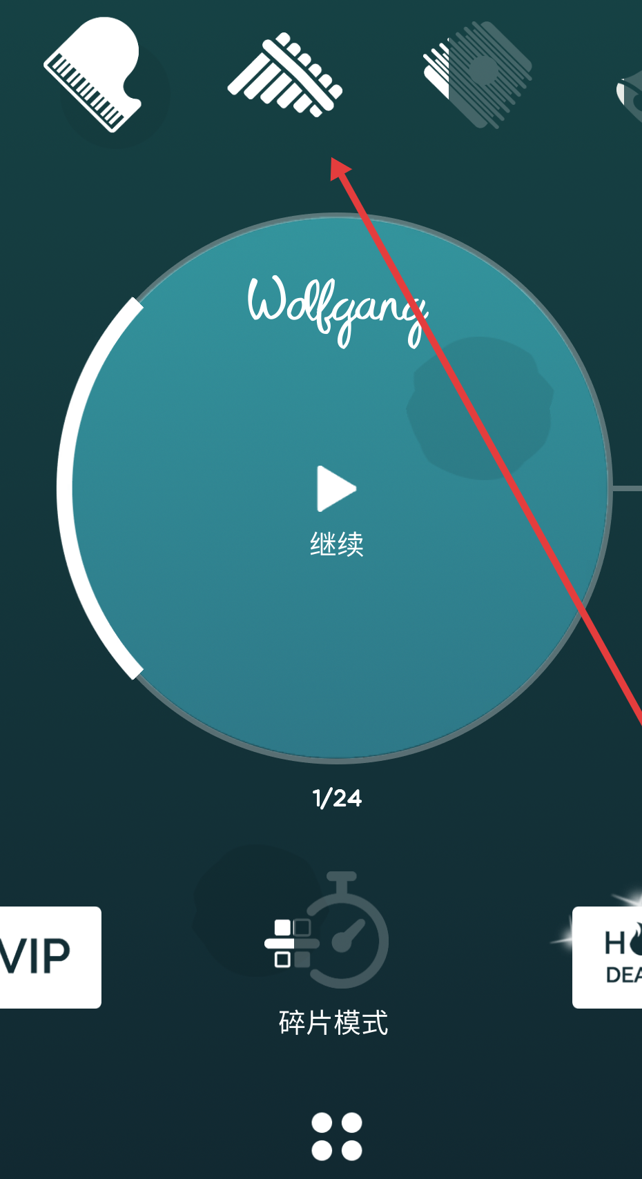1、选择上方想要的各类乐器,点击中间继续按钮,进入选中的关卡,开始挑战。