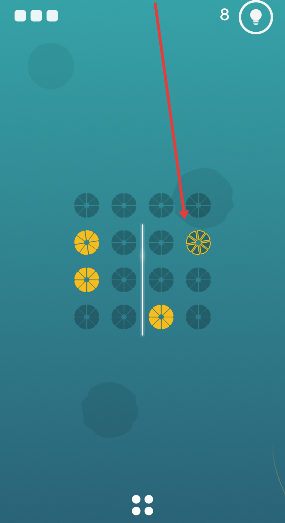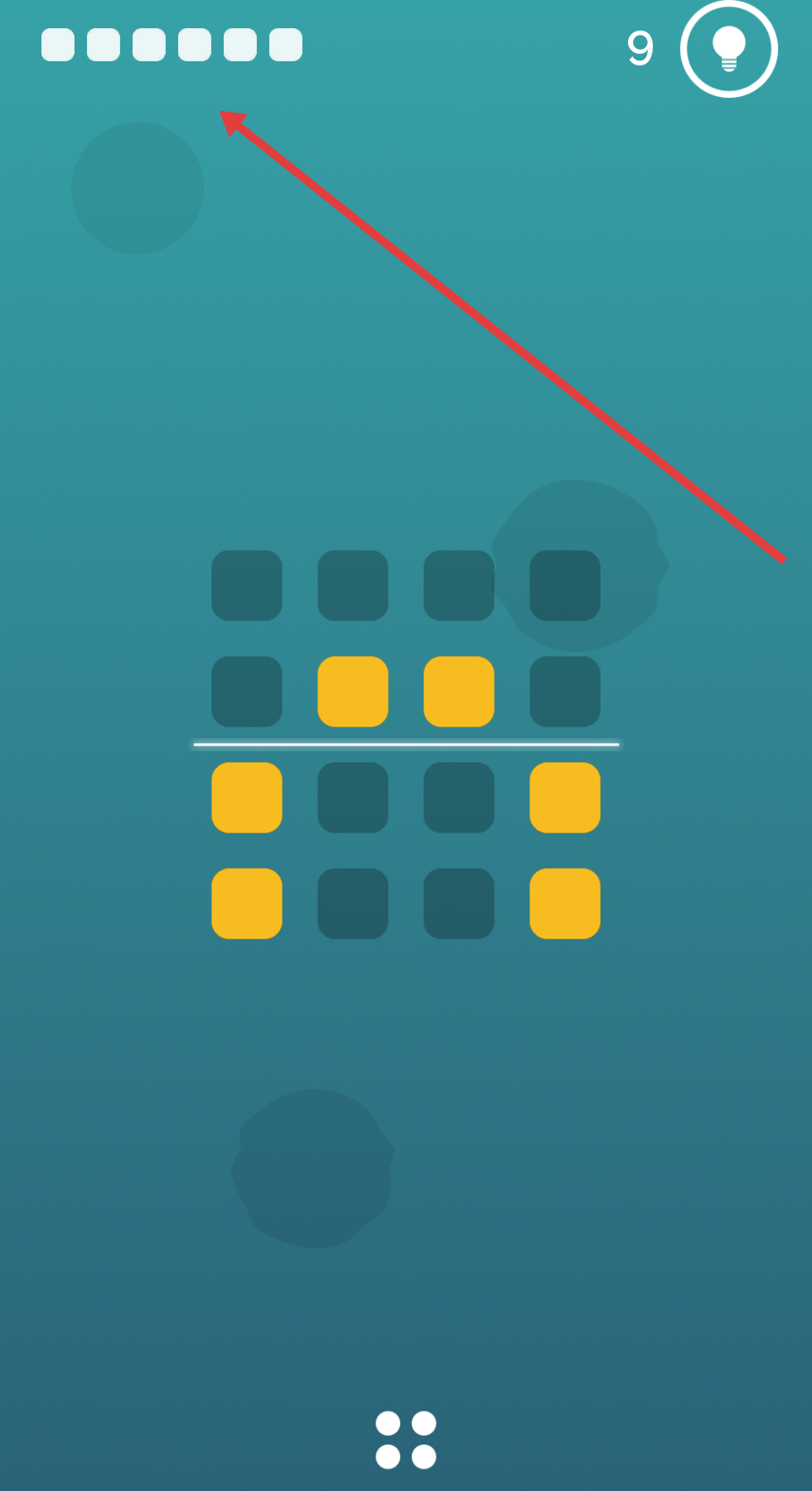 2、左上角有着几个白方格就说明当前关卡有着几个放置的次数,使用顶部全部白格。