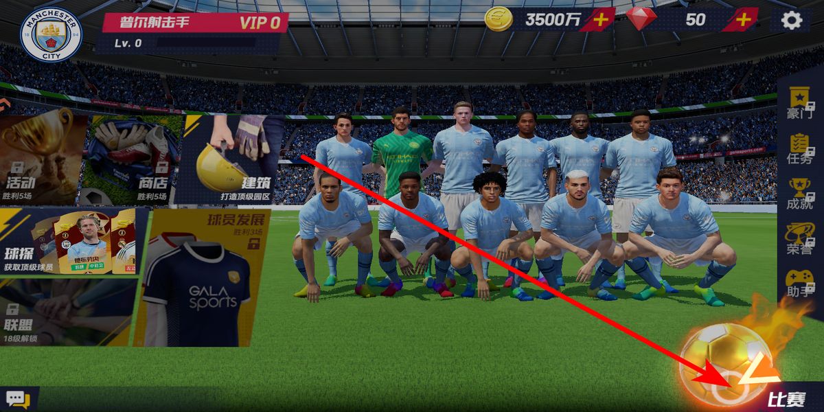 1、比赛入口选择主界面右下角点击比赛,进入赛事选择,赛前查看对手阵容与实力,调整己方球员站位、阵型,预设攻防策略,为比赛奠定基础。