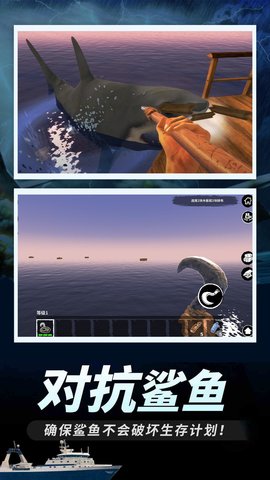 3、海底探索与危险应对:放下锚点潜入海底探索,获取深海中的稀缺资源,需警惕海底潜藏的危险;面对鲨鱼攻击时,及时使用矛反击,保护木筏不被破坏。