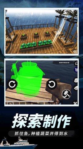 1、写实3D生存环境:打造模拟逼真的三维生存环境,从台风过境时的狂风巨浪到平静海面的波光粼粼,每一处环境细节都力求还原真实海上场景,结合动态光影效果。