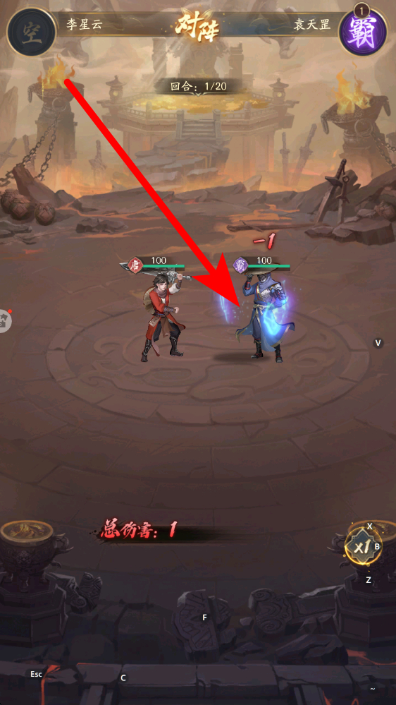 1、进入战斗界面,回合启动时观察敌我状态,点击侠客头像或技能标识,选定攻击目标释放基础招式,如李星云对阵袁天罡时发起普攻,逐步消耗敌方气血。