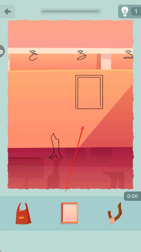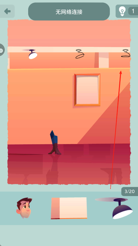 1、进入关卡,观察轮廓图空缺,从下方选对应素材,按红箭头放至正确位置,填充基础部分。