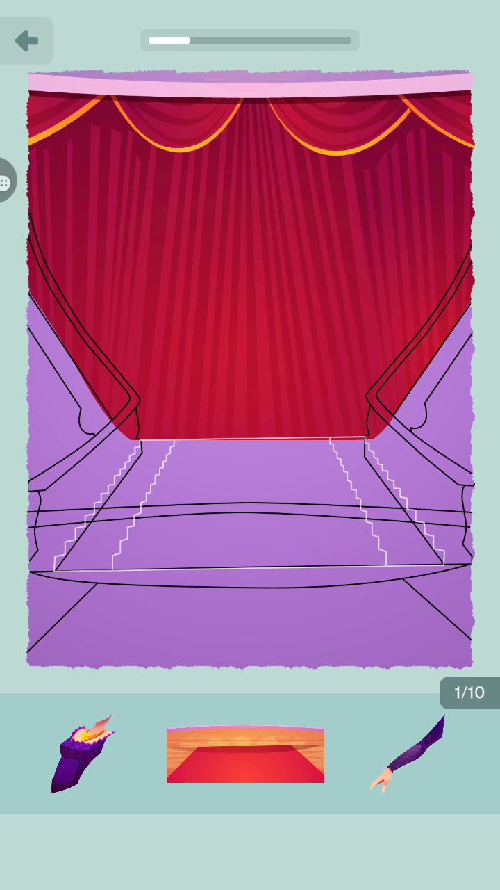 3、拼艺术展厅等关卡,从整体布局考量,结合人物、展品位置关系,让图形适配场景。