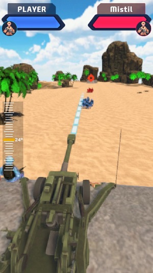 1、高级战术操作执行:支持弧线射击、跳弹等高级战术操作,可通过调整火炮角度与发射力度,用跳弹原理让炮弹在地面反弹后命中隐蔽目标,操作需要精准计算弹道。