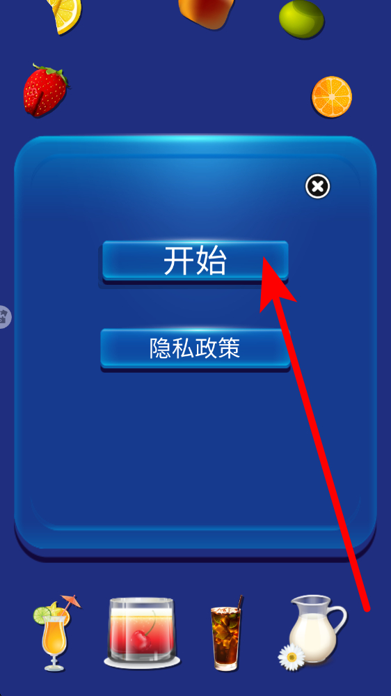 1、启动选饮流程进入游戏点击开始按钮,跳转饮料选择界面,浏览咖啡果汁等多样品类,点击心仪图标冰咖啡样式,进入成分搭配环节。
