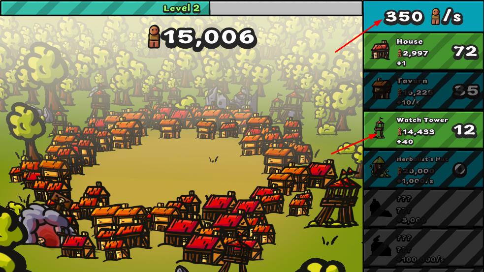 2、建筑生成后,人口持续增长,升级建筑可强化效率。