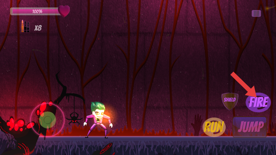 2、遭遇蜘蛛、血手印障碍,用JUMP来躲蜘蛛RUN加速冲过密集血手印区,或开SHIELD硬抗相关的伤害。