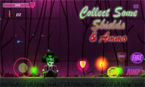 1、开局沿坡道前进,遇发光球体提前JUMP跨越,保持血量健康;看到子弹道具,靠近自动拾取补充弹药。