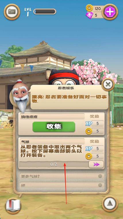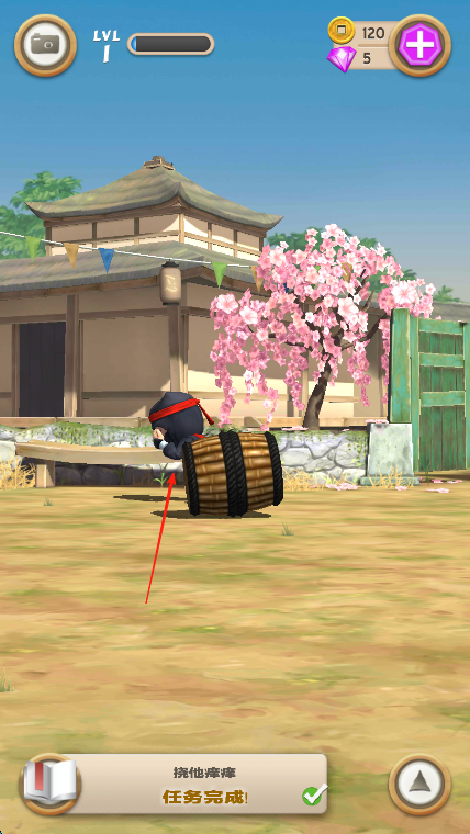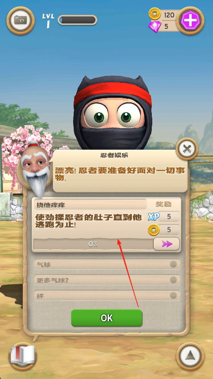 2、按提示操作,使劲揉忍者肚子,使其逃跑,完成任务后点收集领奖。