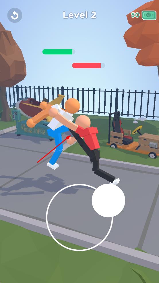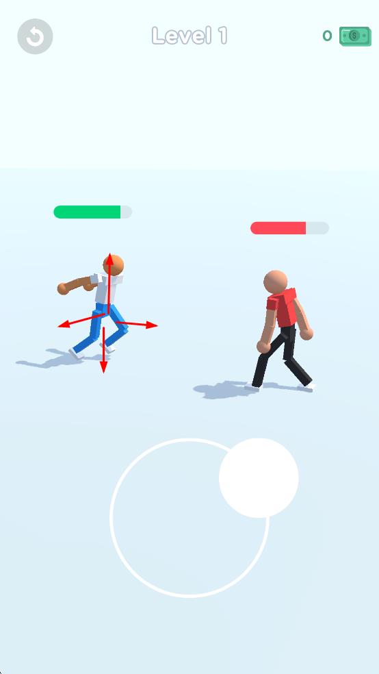 1、用虚拟摇杆操控角色移动,与敌人格斗,点击攻击键输出伤害。