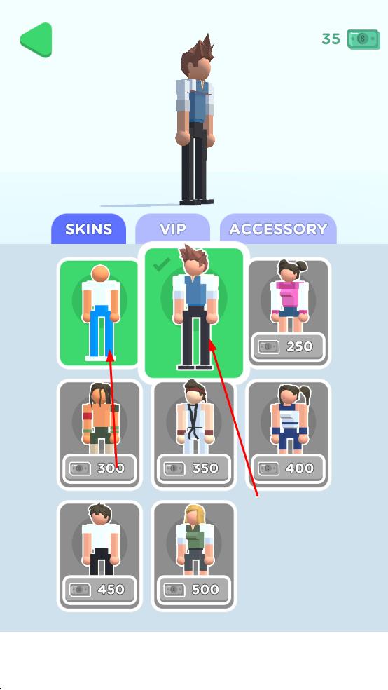 3、在Skins界面消耗金币,解锁更换角色外观不同造型皮肤。