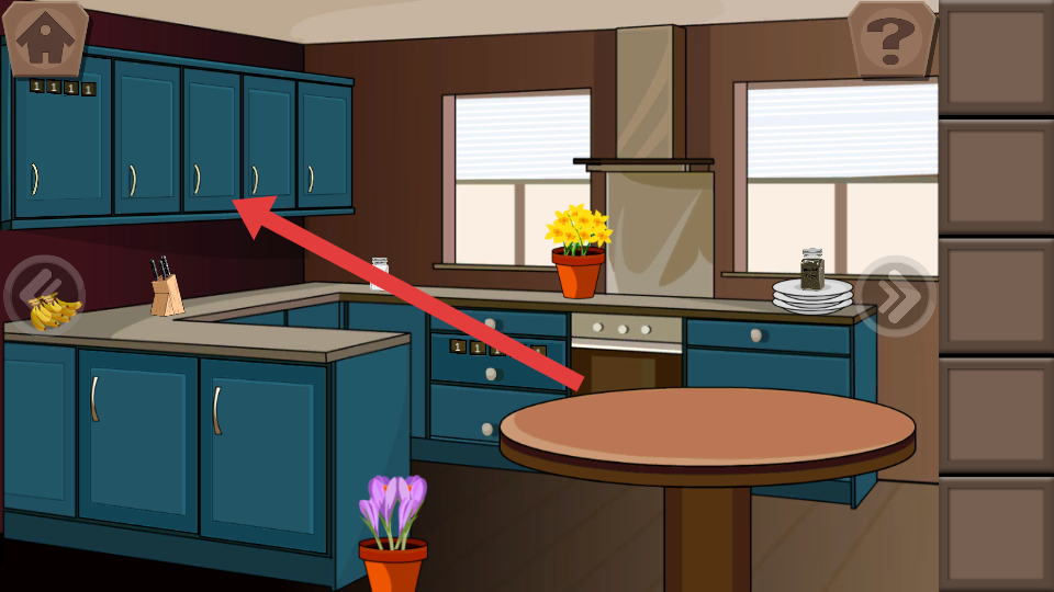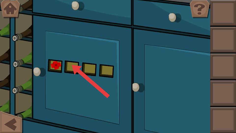 2、遇到带花朵插槽的柜门,记好位置,回头找花朵道具,留意橱柜数字如抽屉上的符号,可能是密码。