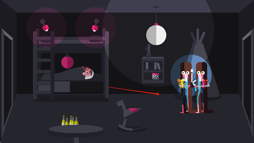 2、动态角色反应:家人被吓唬后会有不同反应,如妈妈捂嘴笑、爸爸假装逃跑,角色表情与动作生动,让互动过程充满欢乐。